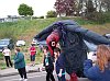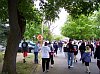 Some of the signs indicating tee-shirt sizes are finally visible. Fortunately they avoided a mad scramble with people shuffling to get into the right line by having all sizes available at all the tables. You just had to go along far enough until you reached your size and then take your shirt from there. |