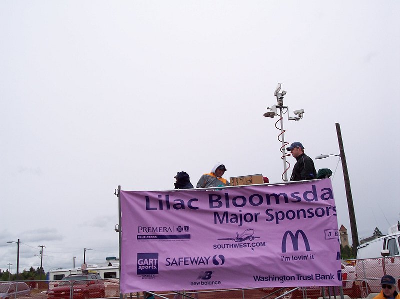 Speaking of the DJ's location, here it is. And there on the banner are listed the companies that helped to make this race work. Bravo to them! |