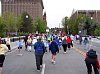 Now there's a pretty site! This was the last mile marker, and the next thing we would be looking for was the finish line. The route ran down Broadway, which we were on, down to Monroe Street. I heard someone behind me say that the place we turned was up at the building with the green on top of it at the end of this road. My heart sank when I heard that. My hips were hurting so bad that I didn't know if I could make it that far. Fortunately he was wrong. We didn't have to go that far, and I did make it. |