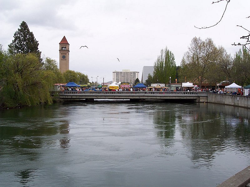 Heading north across the Spokane River, I caught just a glimpse of the Spokane Falls off in the distance. The falls are a wonderful scenic aspect of the downtown area of this beautiful city. |