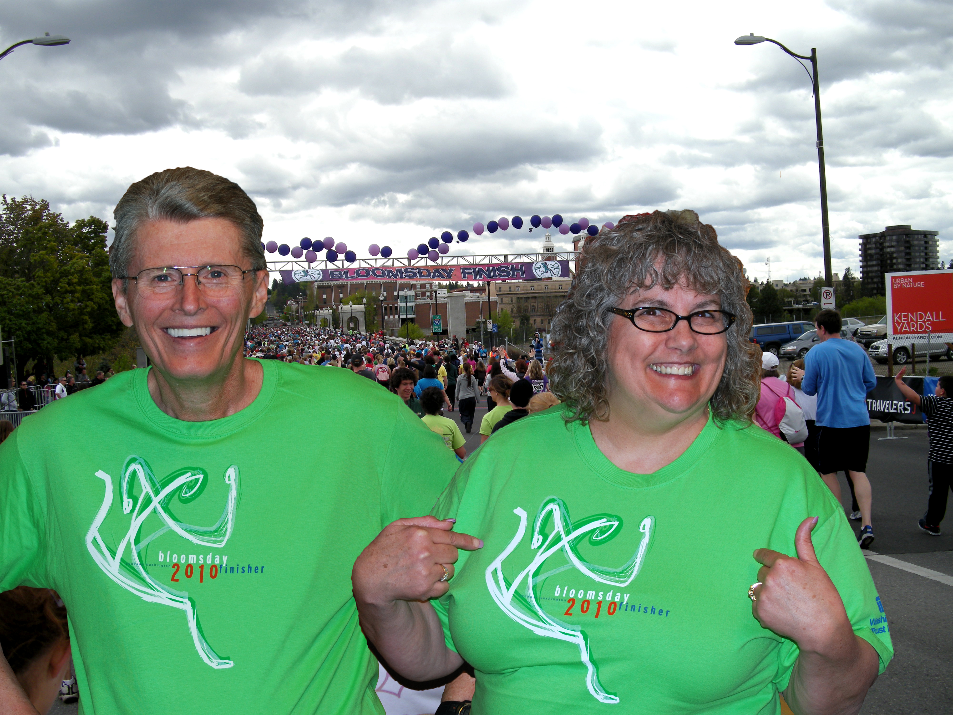 This was our first Bloomsday without our friends Jim and Tammy joining us. In fact to be more accurate, it has always been us joining them, because Tammy introduced us to the race in the first place. Unfortunately, Tammy was having some back issues that kept her out of the race this year. We really missed them throughout the entire process!
