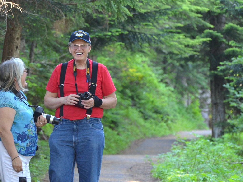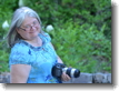 Joan is all set to take some flower pictures.