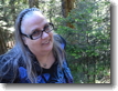 Joan is now near the drop pool of Horsetail Falls and lining up a shot. On a hot windy day, moving over to the right, and standing at the edge of the pool, you will get a wonderful cool mist from the falls that will take the nasty heat right out of you.