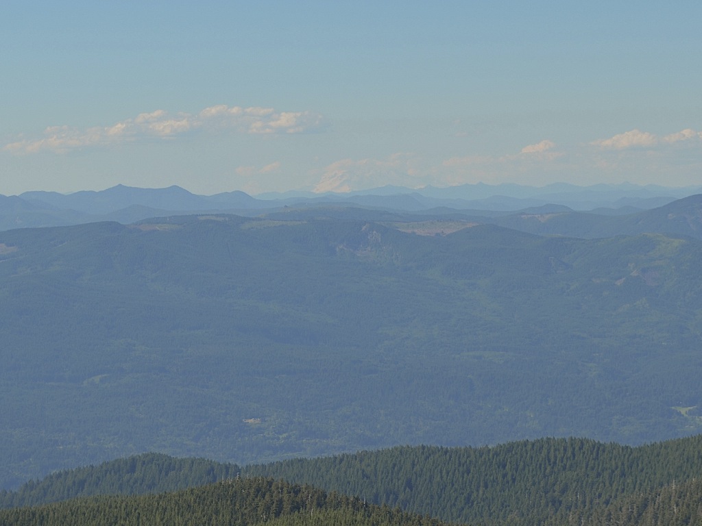Despite its truncated height, Mount St. Helens is still over twice as tall as Larch Mountain, and its top is covered in snow. You can see the snow line, and other than for the clouds and sky, including the place we were standing, everything you see is below that line.