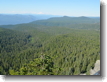 The view from one volcano to another. We were nearly at the top of Larch Mountain, with just a few more stairs to go up, but first we were given this beautiful view of Mt. Hood. The rock on the left is frozen lava, part of the volcanic plug that filled the erupting tube as Larch Mountain finally ended its active days. The cone of the volcano has been worn down and left this plug as the highest point on the mountain. Contemplating the fact that one is standing on what was once melted rock, rock which had been pushed up to the surface from far below, is a bit disquieting. Not only was this ground created by the flow of molten lava, but then it was covered by glaciers, which opened up the smaller cone into something that looks closer to Mount St. Helens in shape. To walk around the cone is a six mile hike, which I hope to do before too much longer.
