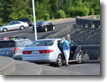 Here’s Joan getting into the car, and I shot this one out of order, but I put it with the other car shot. This is a very busy spot for tourists. First of all, any major shot of the Columbia River Gorge seems to include Crown Point and the Vista House as part of it. (See the shots above we took at Chanticleer Point.) And then when you stop here, you are treated to an incredible view of the river and the Gorge.