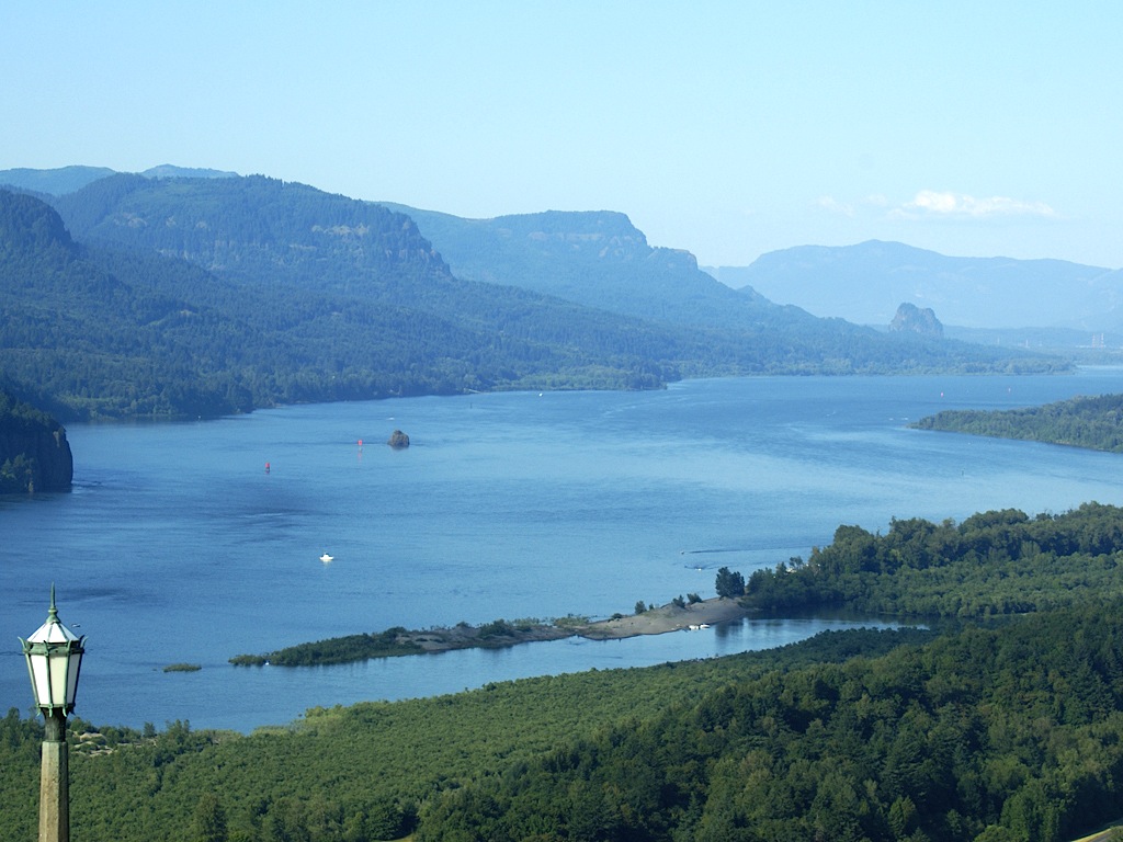 The Columbia River, throughout the entire length of the Gorge defines the border between Oregon and Washington states. We were standing on the Oregon side and everything on the other side of the river is in Washington. |