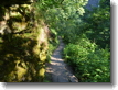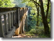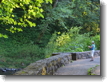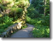 The trees, reaching out their branches, almost seem to be sentient, watching over the bridge. Life abounds in the area around this creek; the rock walls of the canyon are invisible, covered completely with greenery. |