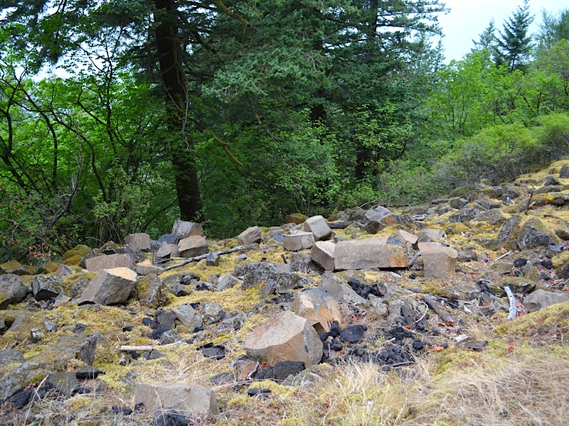 ![]() | Once again, look at this collection of rocks in the rock slide so common to the Columbia River Gorge; these rocks look more like a child's blocks tossed down the hill than broken stones. | ||||