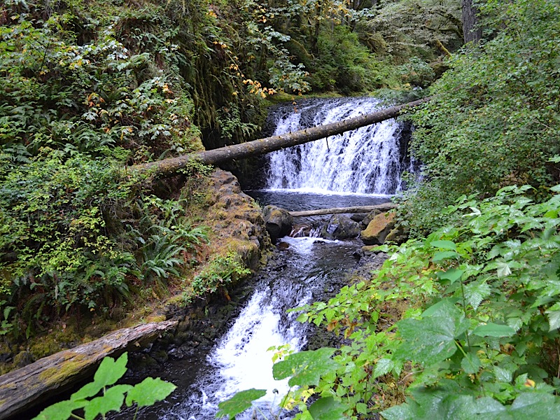 This is another view of the mini-waterfall by the viewing platform. The same water we were seeing going over Ecola falls and all the little falls along the way this day, were heading for this very beautiful spot. | ||||