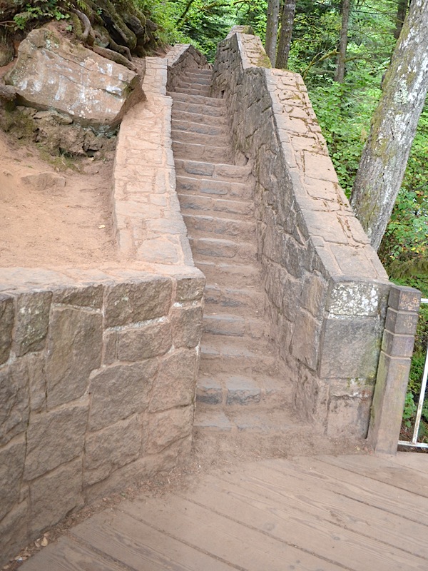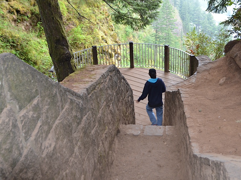 We finally broke away from the view at the top of the falls and headed back down. Only we started out by heading up instead. First we had to go up those stone steps we looked at before and then we had to work our way back up to the top of the trail where we were before.