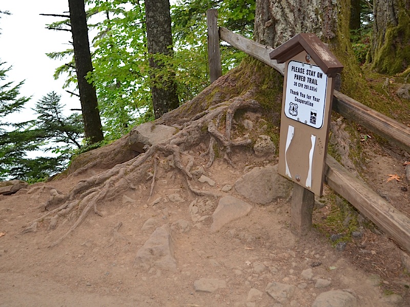 I just looked this up online and I found that the reference Code of Federal Regulations Title 36 is connected with "Parks, Forests, and Public Property" and part 261, is the category of "Prohibitions." Then I found that in Section 53 there are listed "Special Closures," and Item (e) is "Public Health and Safety." All that is well and good but it doesn't make you much wiser. It merely states that the people in Washington DC have taken an interest in this particular trail and that they say you can't leave the paved trail because it would endanger public health or safety. But what if you ignore this prohibition? I searched further, and I found under §261.1b "Penalty" the following: