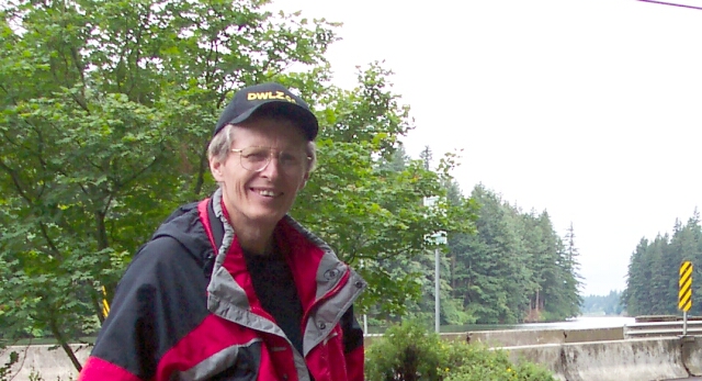 Al, with Mill Pond in the background. This body of water was created by the dam we were about to cross, that blocks the Lacamas Creek. |