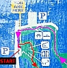 ![]() | The path leading from the parking lot to the park. On the left is a sign showing a map of the hiking trails in the park. | |