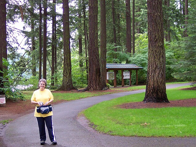 ![]() | Here I am standing to the west of our van, with the sign that was shown in the first picture located right behind me, although not visible in this view. In the distance you can see Lacamas Lake. | |