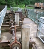 ![]() | Looking to the northwest we can see the recently crossed platform that is built over the inlet to Mill Pond. Inside the structure there is a large self-cleaning "fish screen," that reminded me of a squirrel cage, because it was shaped like a cylinder, and it constantly rotated. The cylinder was made out of a steel screen mesh that keeps fish and other unwanted items from drifting into Mill Pond from Round Lake. | |
