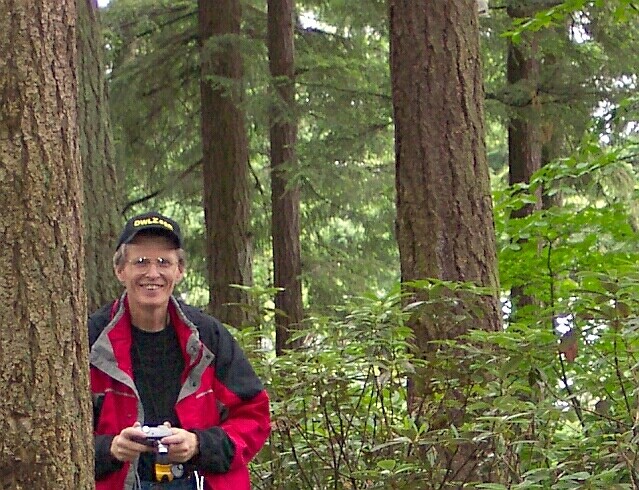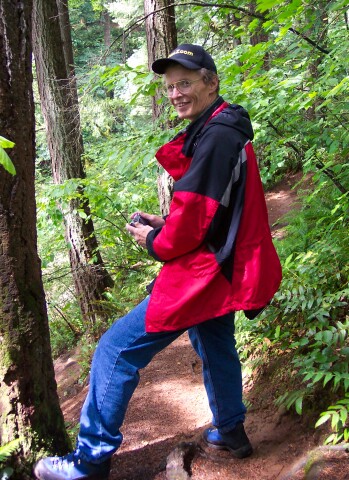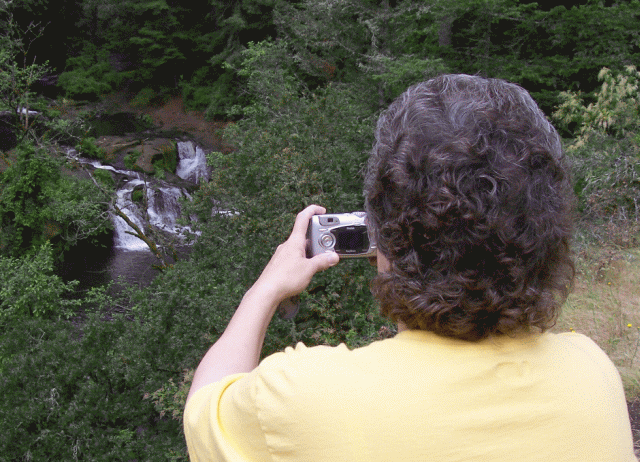 ![]() | Dotti caught me getting ready to take a picture of "The Potholes." Unfortunately, the view of "The Potholes" from this location was not very good. The lush forest growth blocked the view very effectively. | |
