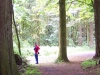 ![]() | Dotti is standing on the path, with Round Lake just peeking through the trees on the left. Curving towards the right in the photo is our hiking trail. | |