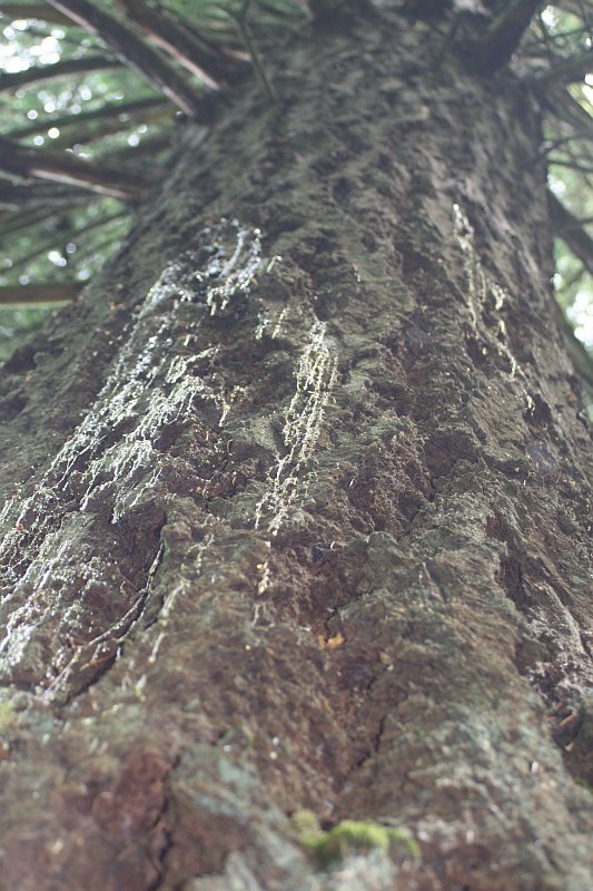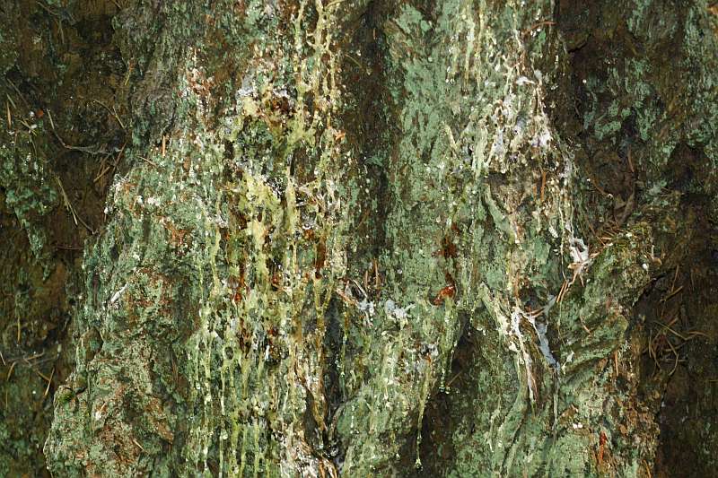 Farther down the tree, the sap nearly looks like icing on a cake, almost pure sugar. |