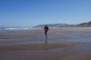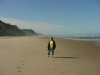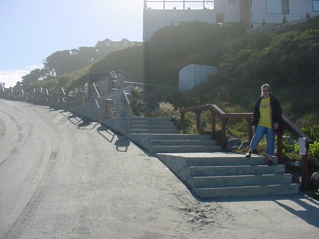In order to get to the beach from our motel we had to go down the stairs that are rising up to the left from my lovely Dotti. The road empties out directly onto the sand, and there is a section of the beach where parking is allowed. One guy had a tent set up next to his car, and had obviously spent the night there.