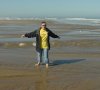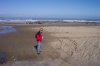 Dotti is here looking inland, where the buildings are lifted out of sight along this portion of the beach, as the tracks of various walkers and joggers mark the smooth surface of the beach.