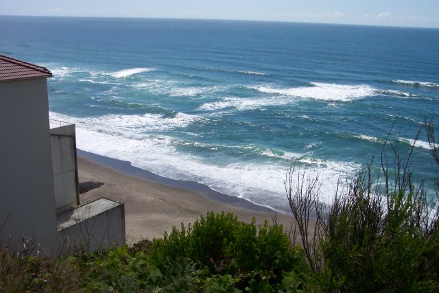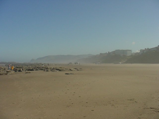 You can see the rolling nature of the hillside that tracks along the beach. At the left of the picture there are buildings right down on the sand, while moving just a short distance to the south the buildings are driven up into the air by the hill.