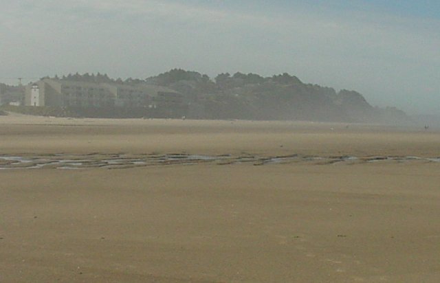 One last shot of the "elephant" mountain, as viewed from our room. We were very lucky to have had such super weather for our entire stay at Lincoln City. The sky was nearly always blue, which made the water, breakers, sand and even sea grass look even more beautiful than they always are anyway. The white clouds in the distance merely add a nice contrast, and mark the end of long buy very enjoyable hike.