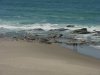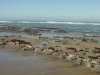 There is quite a number of seagulls congregating here where a stream enters the Pacific Ocean.