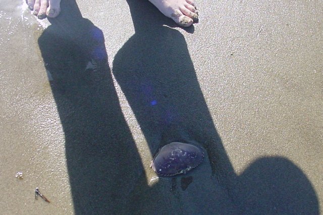 Here Dotti's shadow is falling over a shell we found on the beach.