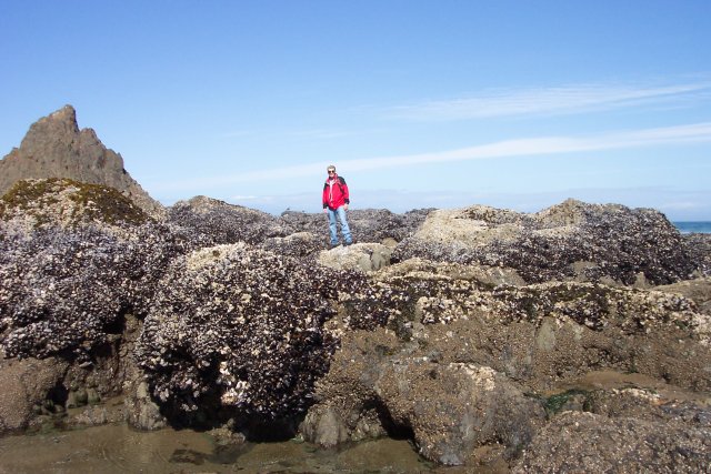 The rocks are covered with hundreds of shelled creatures. The shells were about 2 and a half inches in length, and about an inch wide. When you stepped on them, there was some give to the structure, as if they were held together with a rubber like adhesive.