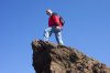 As we walked along, we saw off in the distance a rock that was pointed towards the sky, and on it was what appeared to be a tree standing on its summit. When we had gotten a bit closer we realized that it was a man standing on top of the rock. By the time we got here the man and his children were heading out. The pointed rock was behind me in this picture.