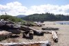Here we are at the five mile point, and the end of the beach portion of our walk. Where the flag is waving in the background the road comes down to meet the beach and we exited at that point. We have just shed our coats, because we have finally warmed up enough to no longer need them. It is amazing the size of some of the pieces of driftwood that we saw. One tree we passed lying on the shore was nearly intact. Here you can see an assortment of various sizes.