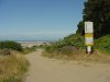 Looking eastward back at our motel. Our room was on the very end on the left on the second floor. The sign in the foreground marks the northernmost limit of the area of the beach where cars can be. Beyond that it is foot traffic only. You can see the final remains of the morning marine clouds that are in the process of being burned off.