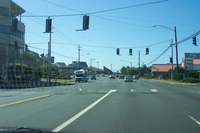 Downhill is nice, except that with our sore feet, and tired legs, it actually made it more uncomfortable. We were wondering just a bit at this point if we hadn't taken on more of a walk than we were ready for. Off to the right is Roberts Book Shop, my favorite Lincoln City book store. (There is a small theater, this side of the bookstore, called Theater West, where it appears that small productions are done.) This bookstore has a huge selection of used books on almost any topic you can think of. There are rooms and rooms of nicely organized shelves. If we come to Lincoln City, we always stop there.