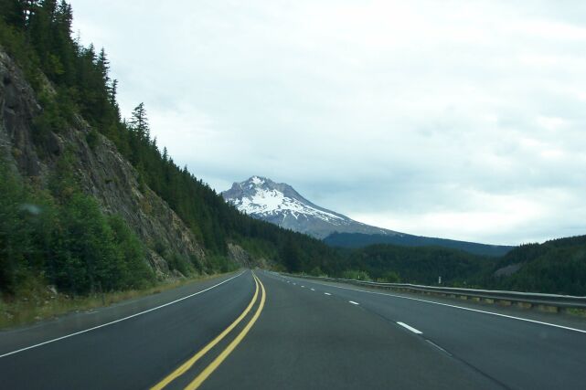 | Dotti snapped this picture of the 11,235 foot Mt. Hood while we were still inside the city limits of Portland on I-84 eastbound. | |||||||||||||||||