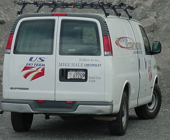 | When we were walking towards the Lodge, we spotted two vans with the US Ski Team logo on them. They had Park City, Utah on the rear panel, and thinking of Barb and Rick in Salt Lake, I had to grab a picture of one of them. | |||||||||||||||||