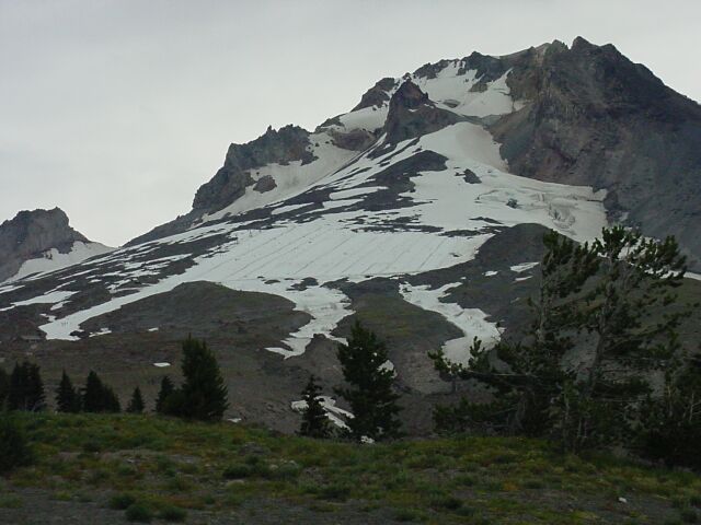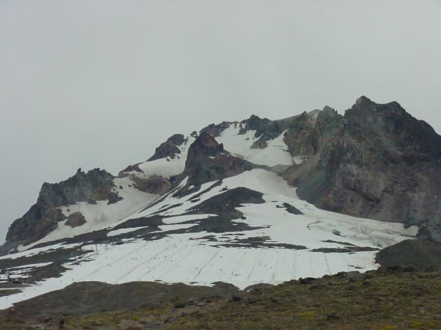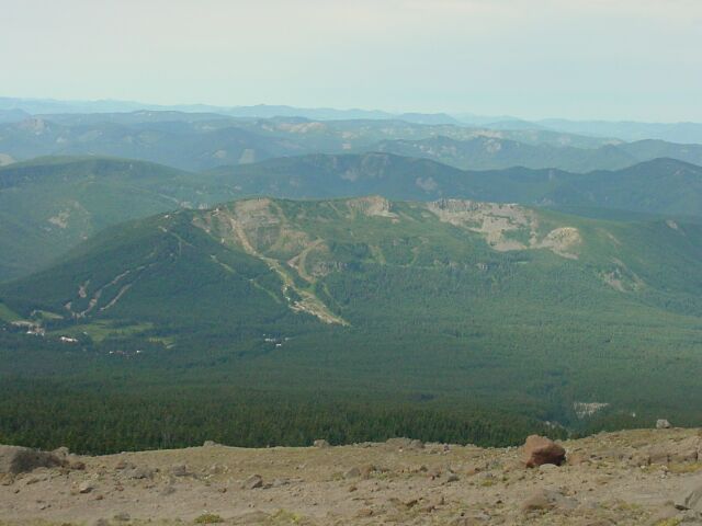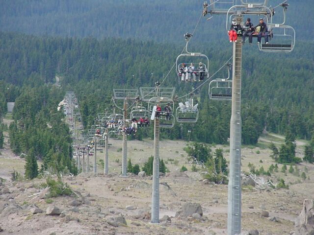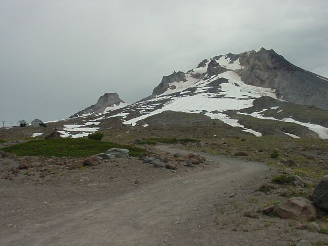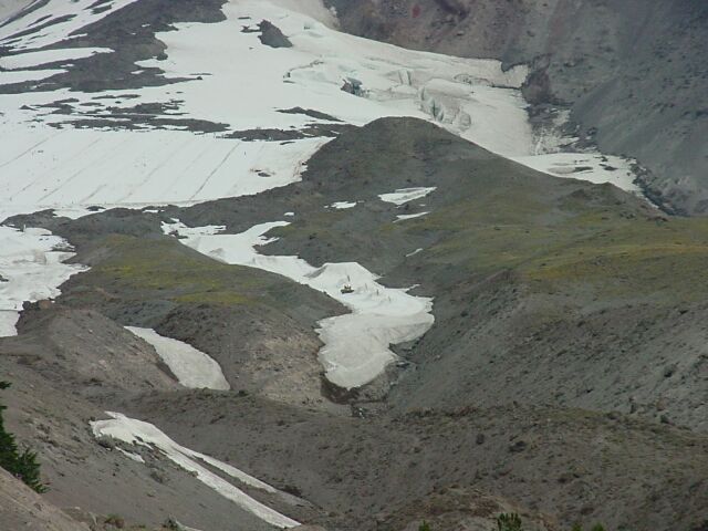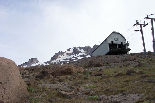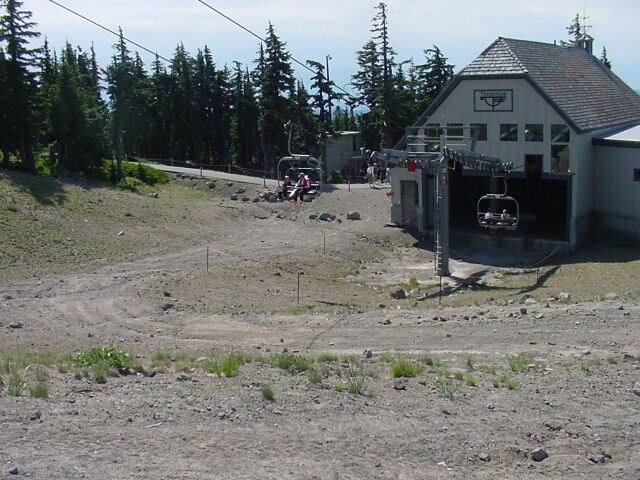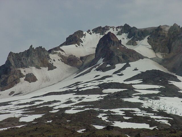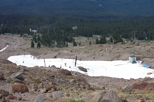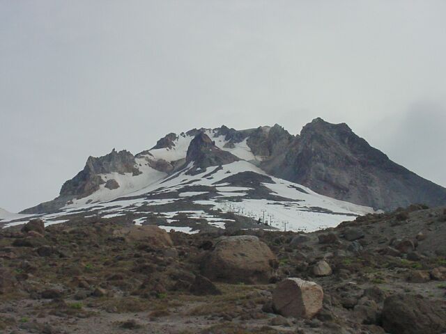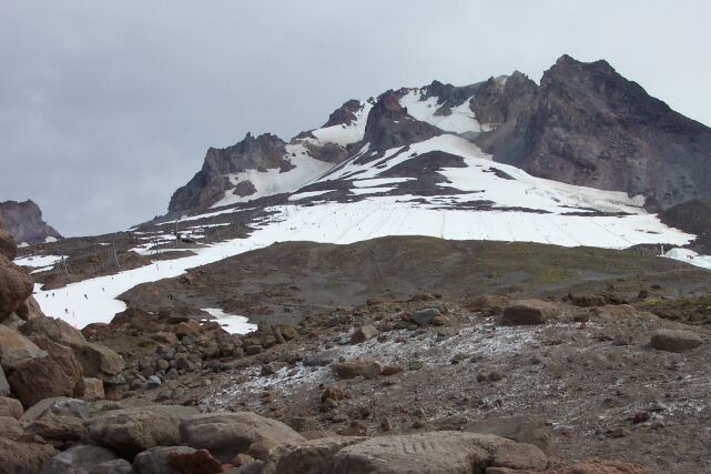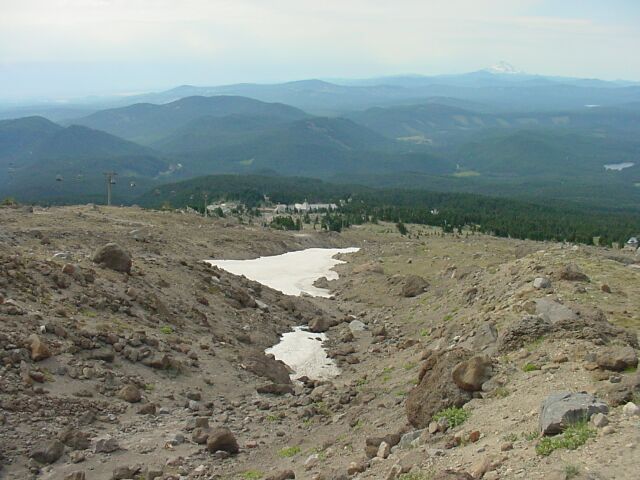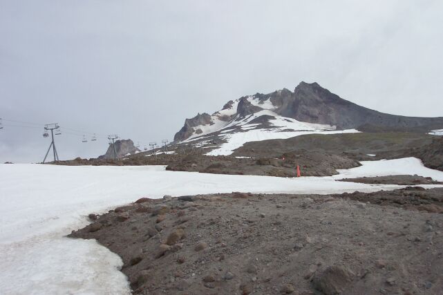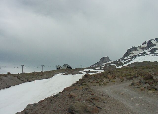 | Using the zoom, and looking up the mountain, you can see a snowplow in the snow-filled gully in the center of the picture. Behind it you can see the terminus of one of Mt. Hood's glaciers. | |||||||||||||||||