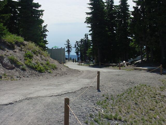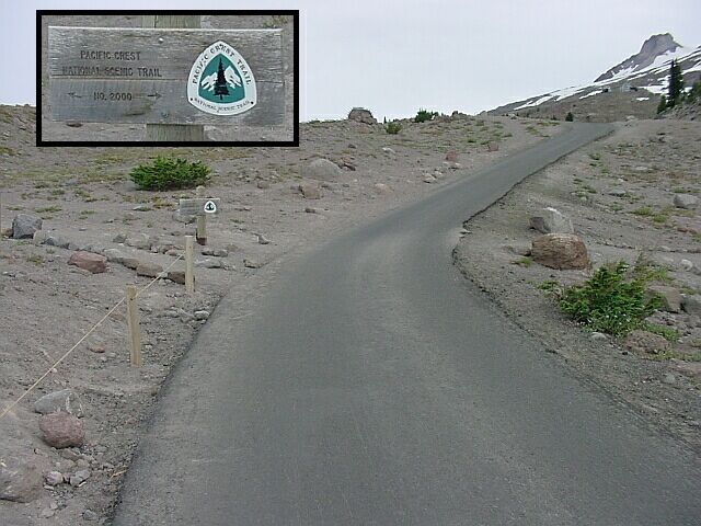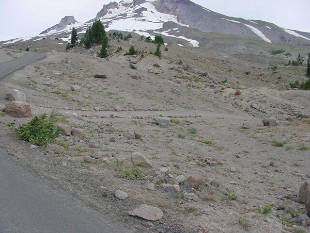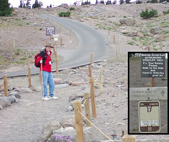 | Up this service road the vehicles go to transport the workers for the ski lifts and the Silcox Hut. Just ahead where the road jogs to the right, the Pacific Crest Trail crosses the road. We are going to take that trail to the right in a moment. | |||||||||||||||||