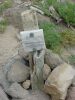 | Since I knew there would be minimal tree cover on this hike, I once again wore my hat to keep the sun off. My camera is ready and my coat is only going to be on for a few more minutes before exercise will make it unnecessary. The signs located behind me in this picture are also shown in the inset to the right. The Pacific Crest Trail that is mentioned is a famous one that runs from Mexico into Canada. | |||||||||||||||||