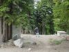 | Here the path is wider and surrounded by trees. To the right you can see a post standing all-alone. It is a marker. | |||||||||||||||||