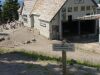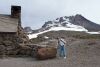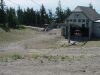 | Behind the Silcox Hut there is a corrugated tin storage shed, an old trail sign and a pile of fire wood ready to burn. With all the chips strewn across the ground it looks like they may have done some chopping on the wood right here. However, it is certain that they did not collect the wood from around the cabin this high above the timberline. |