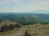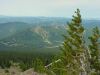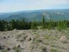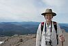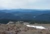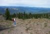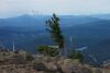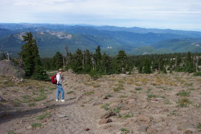 | We took several hundred pictures during our hike, and a significant percentage of those ended up being views similar to this one. In the foreground, about 45 miles away, we have Mt. Jefferson, standing over 10,497 feet. Behind him about 85 miles away, we have the Three Sisters; North (10,085 ft.), Middle (10,047 ft.) and South (10,358 ft.), clumped all together within 5 miles of each other. Off to the left is Broken Top (9,152 ft.). (Mt. Washington and Three Finger Jack are hidden behind Mt. Jefferson.) |