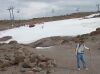 | Before crossing, Dotti had to throw a snowball at me. Just seeing snow in August is a nice change of pace. |
