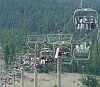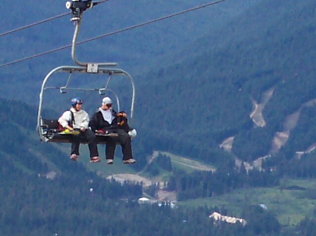 | At last we have broken out of the trees and have reached the other end of the chairlift that we saw at the top. These folks are heading up to where we just came down from. |