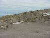 | From this angle you can get a pretty good view of the upper station of the chairlift at the 8,600-foot level. It is pretty easy from here to visualize the lava pouring out of the vent, and just flowing down over the landscape here. There was a volcanic event on Mt. Hood shortly before the Lewis and Clark party came through in 1805. The mudflows that were generated from that event sent debris all the way into the Columbia River, down what is now known as the Sandy River. The name is a shortened version of what Lewis and Clark named it: the Quicksand River. When their Corps of Discovery came through, the mouth of the river was filled with quicksand, which has since been washed away. The lava plug that stands tall in the middle of the crater is called Crater Rock. |