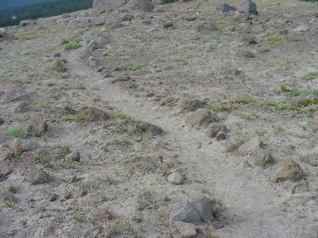 | This is the trail heading to the right. The ground is nearly free of trees at this elevation. | |||||||||||||||||