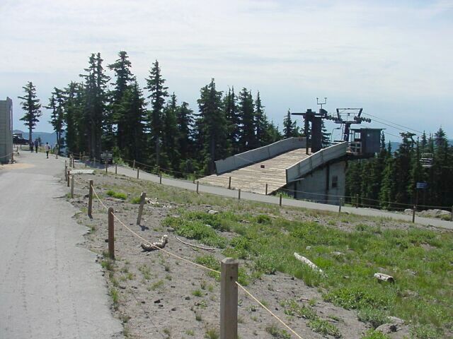 | To the right of the path is the chairlift station. The sign warns of the harsh conditions that plant life has to endure at the timberline. It is not so much the vegetation being fragile as it is the fact that it is living in very harsh conditions and therefore prone to dying with little coaxing needed. | |||||||||||||||||