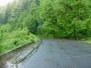 We drove east on I-84 from Portland, and turned off at exit 41 to reach the Eagle Creek trail parking lot. The road is a single lane for a while, with little turnouts for cars to wait in while traffic going the in the opposite direction goes by. This picture show the view looking back towards that road from the Eagle Creek parking lot.