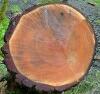 Just doing a rough count on the rings on this tree, I estimate that it is over 110 years old. It was cut and lying in pieces down below in the river. I believe that it was cut because it had become unstable on its root system and they were doing some preventive maintenance. During our walk we saw a great number of trees that had fallen over, with their roots pulled right out of the ground. With this tree, the roots were not visible at all. I guessed that a stump, with those roots still attached was located up the hill, and out of sight.