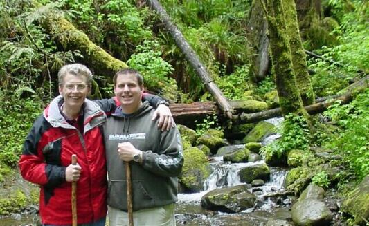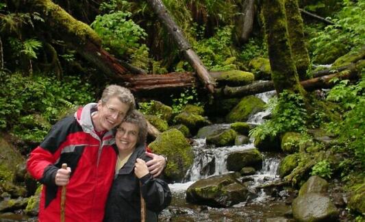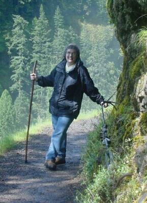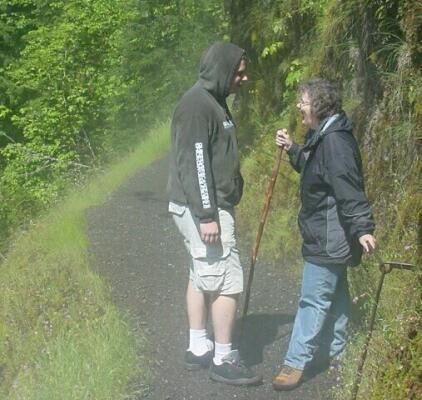 About a mile and a half into the walk, across the valley, and Eagle Creek, we saw Metlaka Falls, which is a "triple falls." So, we grabbed the chance to take some pictures. Here is LeRoy and Dotti.